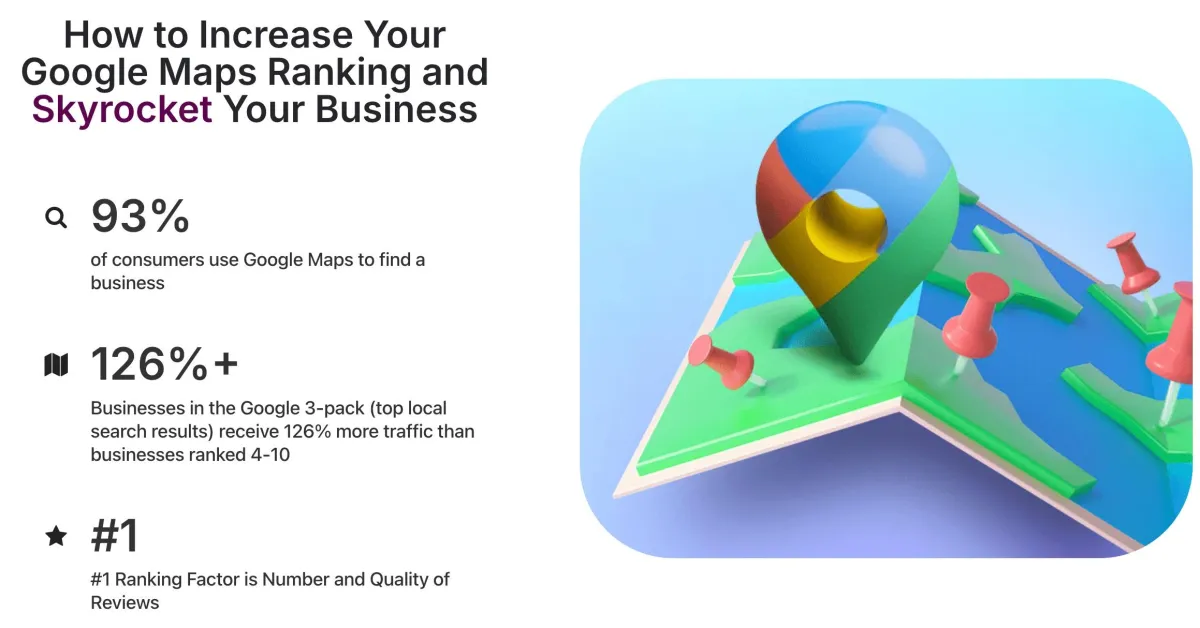 126%+!! Businesses in the Google 3-pack (top local search results) receive 126% more traffic than businesses ranked 4-10